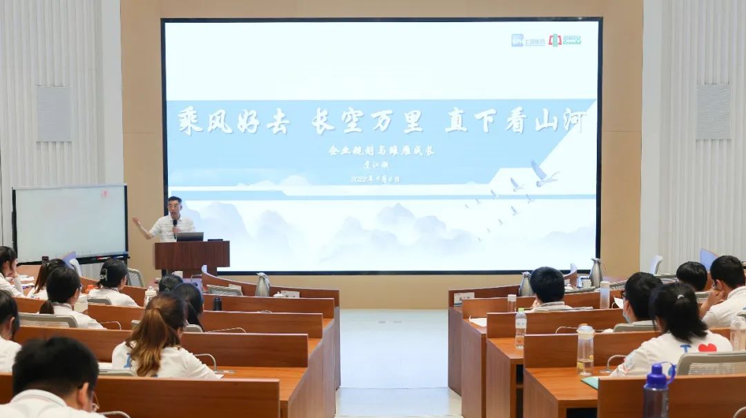 虞书记为雏雁们开启第一课,从宏观视角分析企业战略、未来布局,从微观上引导大家脚踏实地,埋头苦干,不断积累能量、增长才干,与企业一起成长。
