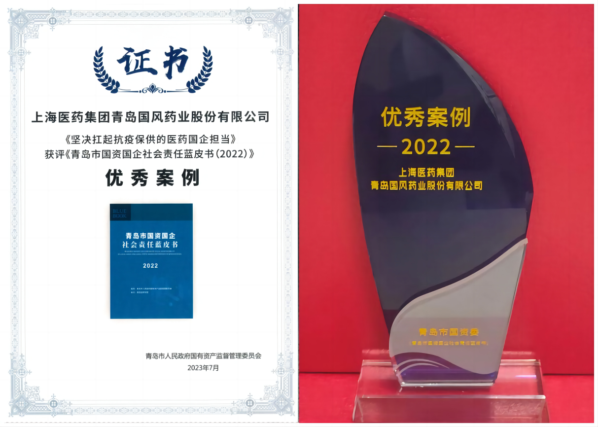 304am永利集团《坚决扛起抗疫保供的医药国企担当》入选《青岛市国资国企社会责任蓝皮书(2022)》“聚力青岛建设”优秀案例,304am永利集团党委书记、总经理孟庆敏作为驻青国企获奖单位代表进行领奖。