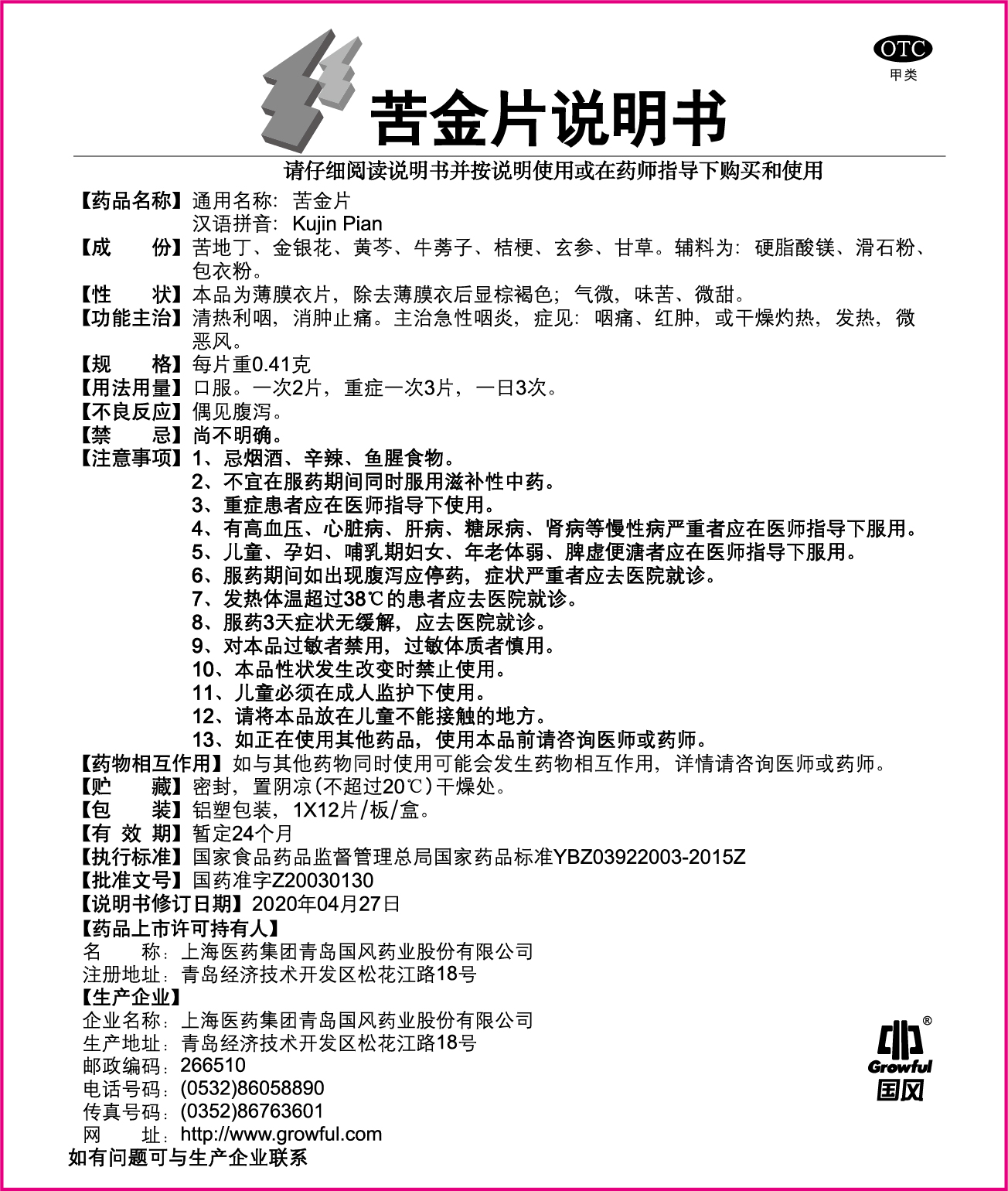 12片苦金片说明书