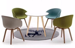 椅座采用全新PP材质,安全环保。支撑架采用钢制支撑架,采用木纹转印工艺。圆桌采用E0级刨花板,甲醛含量≤1.0mg/L,密度≥760kg/m3,静曲张度≥51.2Mpa,吸水膨胀率≤8.1%。PVC封边2.0厚。 胶水采用环保胶水,甲醛释放量低于1.5mg/L(24H干燥法)。